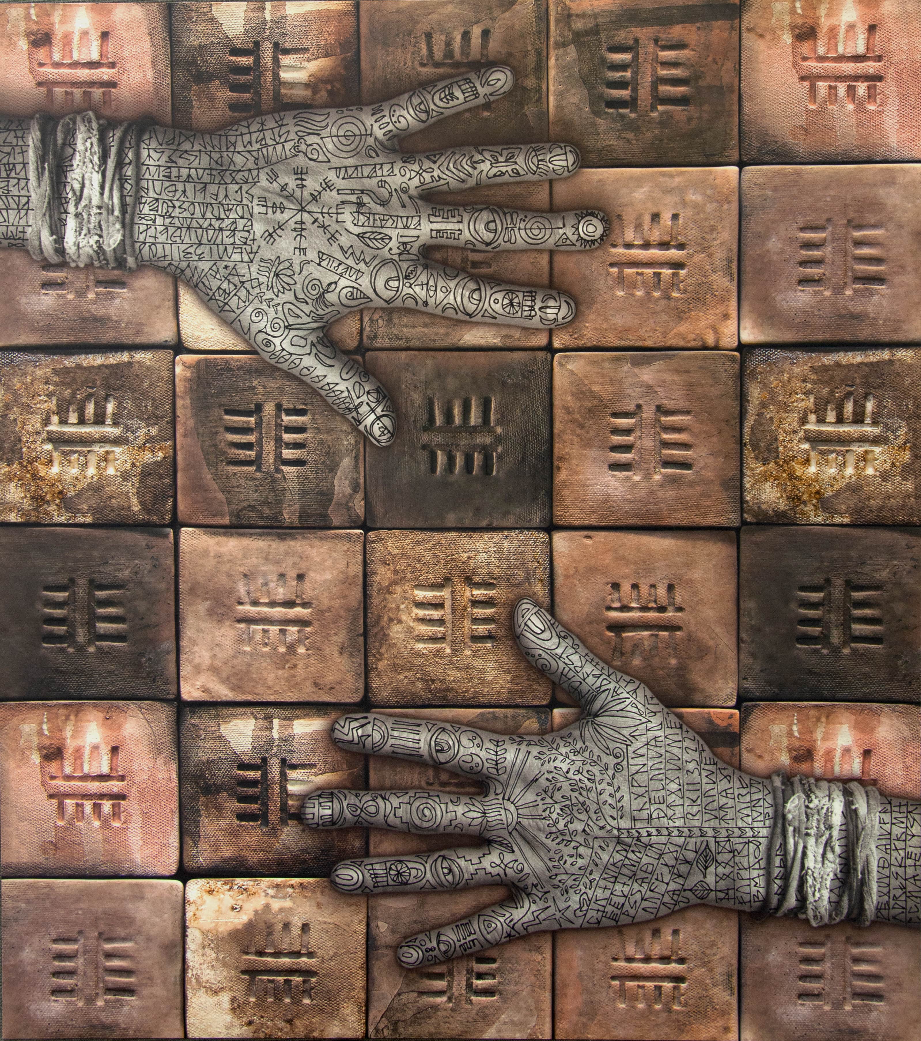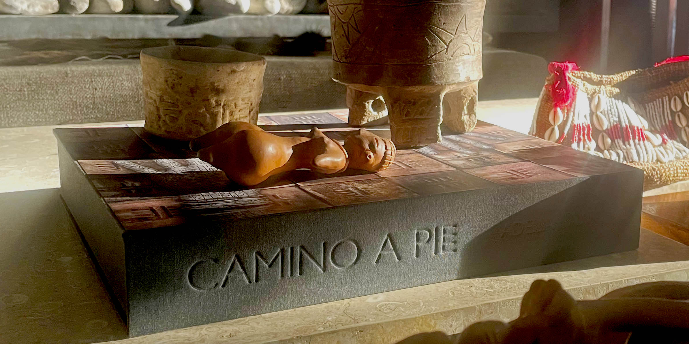 Camino a pie es la recopilación de mi trabajo —pigmentos, textiles, texturas, materiales orgánicos—, y también engloba el mundo en el que me sumerjo cada día: sueños, anhelos, imaginación, filosofía de vida. Camino a pie es la suma de los muchos senderos que necesité recorrer para vislumbrar la grandeza que nos habita y que rige el mundo sagrado sobre el que caminamos.